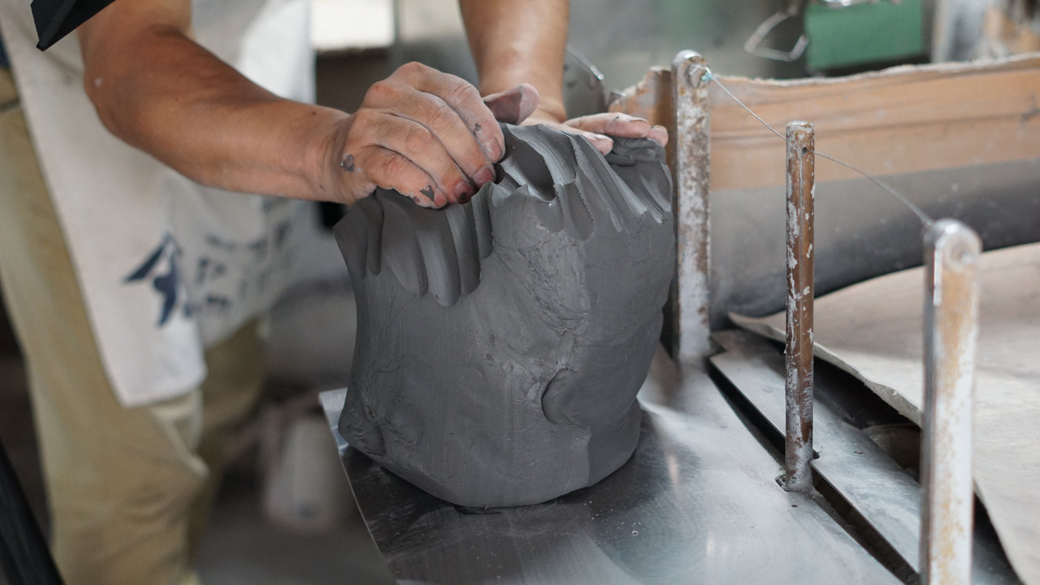 My preferred clay, kurotsuchi, is one of Japan's most beautiful types of clay that I've carefully sourced from Shiga prefecture in Western Japan. Known for its striking black color after being fired in the kiln, this luxurious clay is also notorious for being challenging to work, requiring years of experience to master.